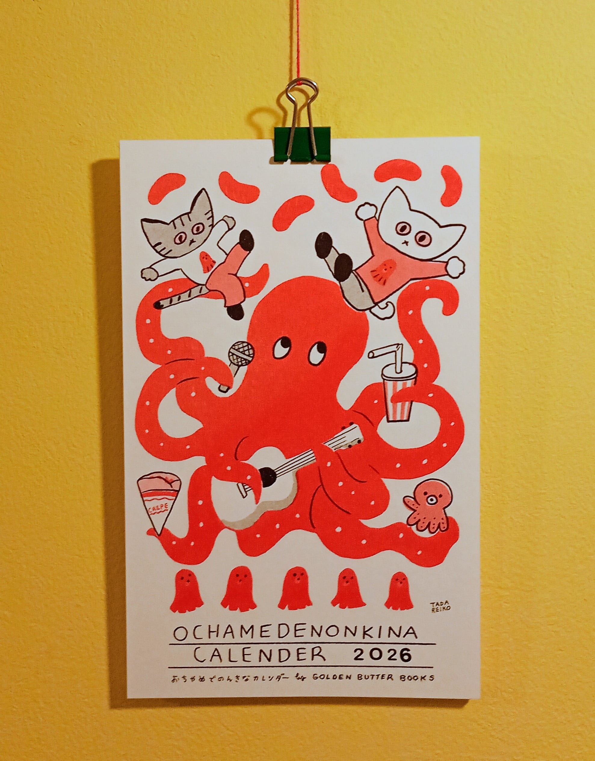 京都在住の友人にして、漫画「ちいさいアボカド日記」や様々なイラスト仕事でもおなじみのレイキンこと多田玲子さんの2026年版カレンダーが入荷しました!